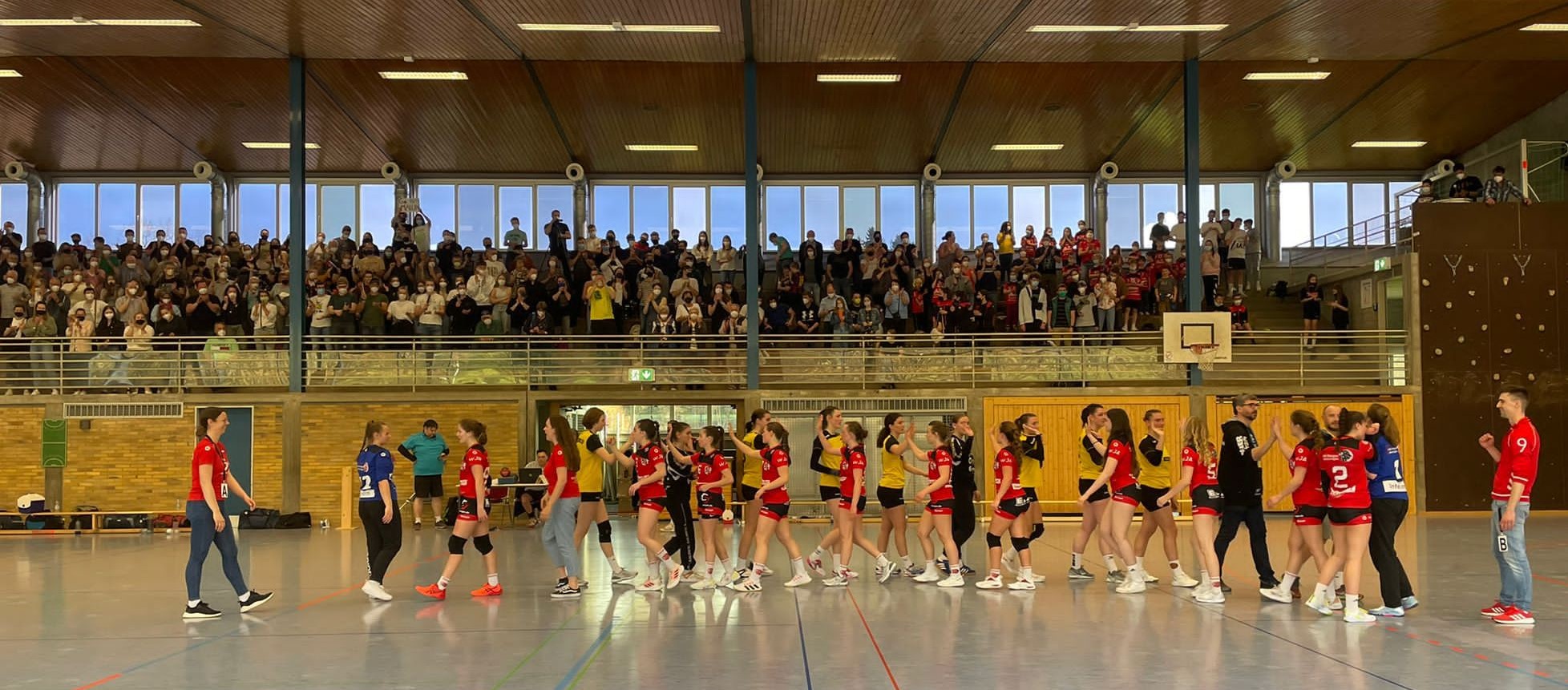 Mit dem knappen Erfolg wurde eine zunächst gute Ausgangsposition für das Rückspiel nächsten Samstag in Biberach geschaffen, die mit etwas mehr Abgeklärtheit aber auch deutlich höher hätte ausfallen können. Ähnlich sah es auch HSG-Trainer Nico Krauß: „Es war insgesamt ein offenes Spiel, jedoch haben wir zu viele Chancen ausgelassen. Andererseits hätte die Partie auch jederzeit kippen können. Die Abwehrleistungen waren heute auf beiden Seiten überragend, im Angriff hatten wir noch zu viele technische Fehler gegen die weit vorgezogene Gästeabwehr-spielerin. Aber wir haben immer wieder spielerische Lösungen gefunden. Und die Kulisse heute war absoluter Wahnsinn, so voll war die Halle schon lange nicht mehr. Kommende Woche werden wir jetzt normal trainieren und regenerieren, um dann am Samstag in Biberach bestmöglich vorbereitet zu sein.“