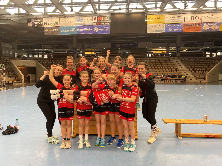 Auch im Handball wurden alle Vorgaben des Trainerteams zur vollsten Zufriedenheit umgesetzt. In der Abwehr machte man Göppingen trotz körperlicher Unterlegenheit durch eine konsequente Manndeckung das Leben schwer. Immer wieder konnten Bälle abgefangen werden, die postwendend im gegnerischen Gehäuse untergebracht wurden. Durch eine hohe Laufbereitschaft ohne Ball konnte die Manndeckung der Göppingerinnen eins ums andere Mal ausgehebelt und mit einem Tor belohnt werden. Alle Spielerinnen kämpften aufopferungsvoll und zeigten eine tolle Leistung. Somit konnte am Ende auch dieses Spiel gewonnen werden. Die Freude der Mannschaft sowie des Trainerteams darüber, auch gegen den Bundesliga-Nachwuchs überzeugen zu können, war dementsprechend riesengroß.