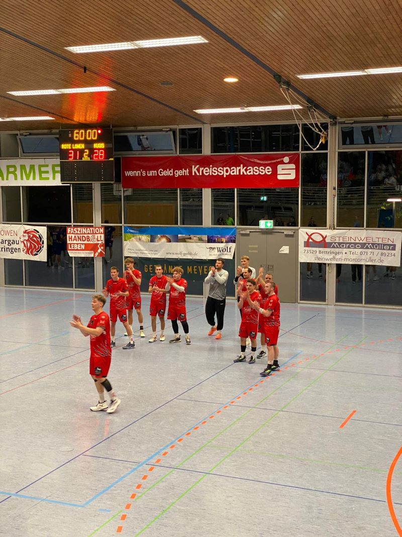 Es spielten: Lars Wamsler (Tor), Noel Aktas (Tor), Benjamin Süß, David Ritz (5), Jannis Barth (1), Jonas Wanner (1), Jona Swoboda (3), Joel Köck (9;2/3), Niklas Dammenmiller, Thilo Hägele (1), Ben Krätzer (2), Pius Hummel, Loris Krieg