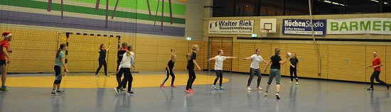 Da die Kinder von nichts wussten, war die Überraschung umso größer, als kurz nach Trainingsbeginn die Eltern in die Halle eintraten und kurz darauf mit ihren Kindern die erste Aufgabe bewältigten. Es folgten ein gemeinsames Aufwärmen mit diversen Dehnübungen, ein kleiner Wettkampf mit Basketballkörben, danach noch ein Handballspiel (ebenfalls „Jung gegen Eltern“) und zum Abschluss noch ein Wettkampf mit Zielwerfen.
