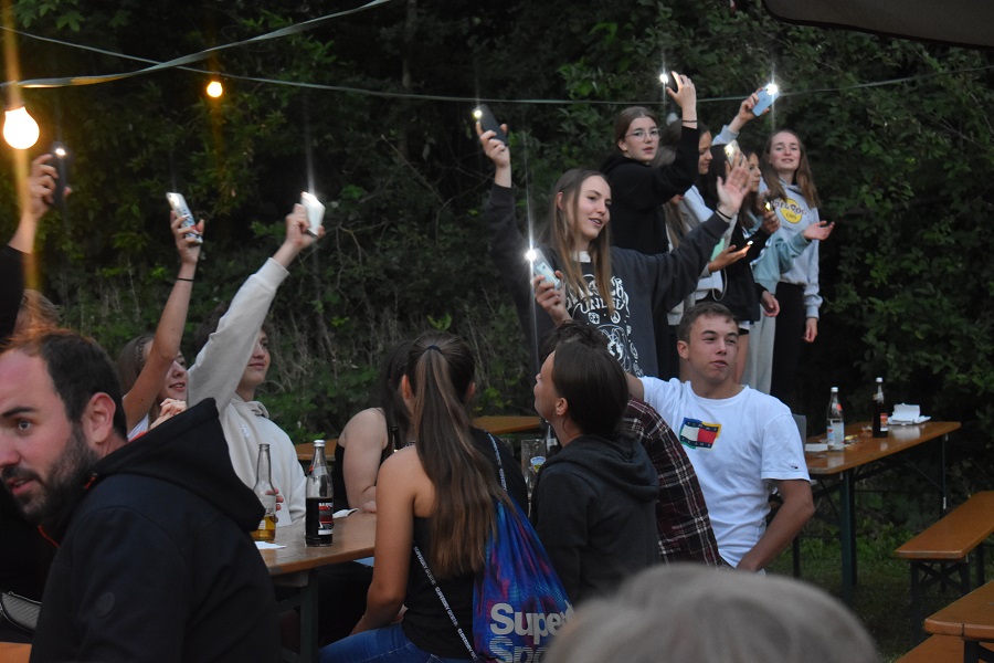 Je später der Abend, umso mehr füllte sich auch der Vorplatz vor der kleinen Uhlandhalle und die Helfer hinter der Theke hatten mehr als nur alle Hände voll zu tun, um die Besucher mit Getränken und Essen zu versorgen.