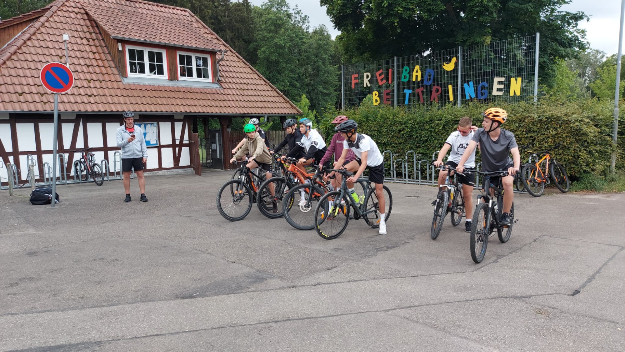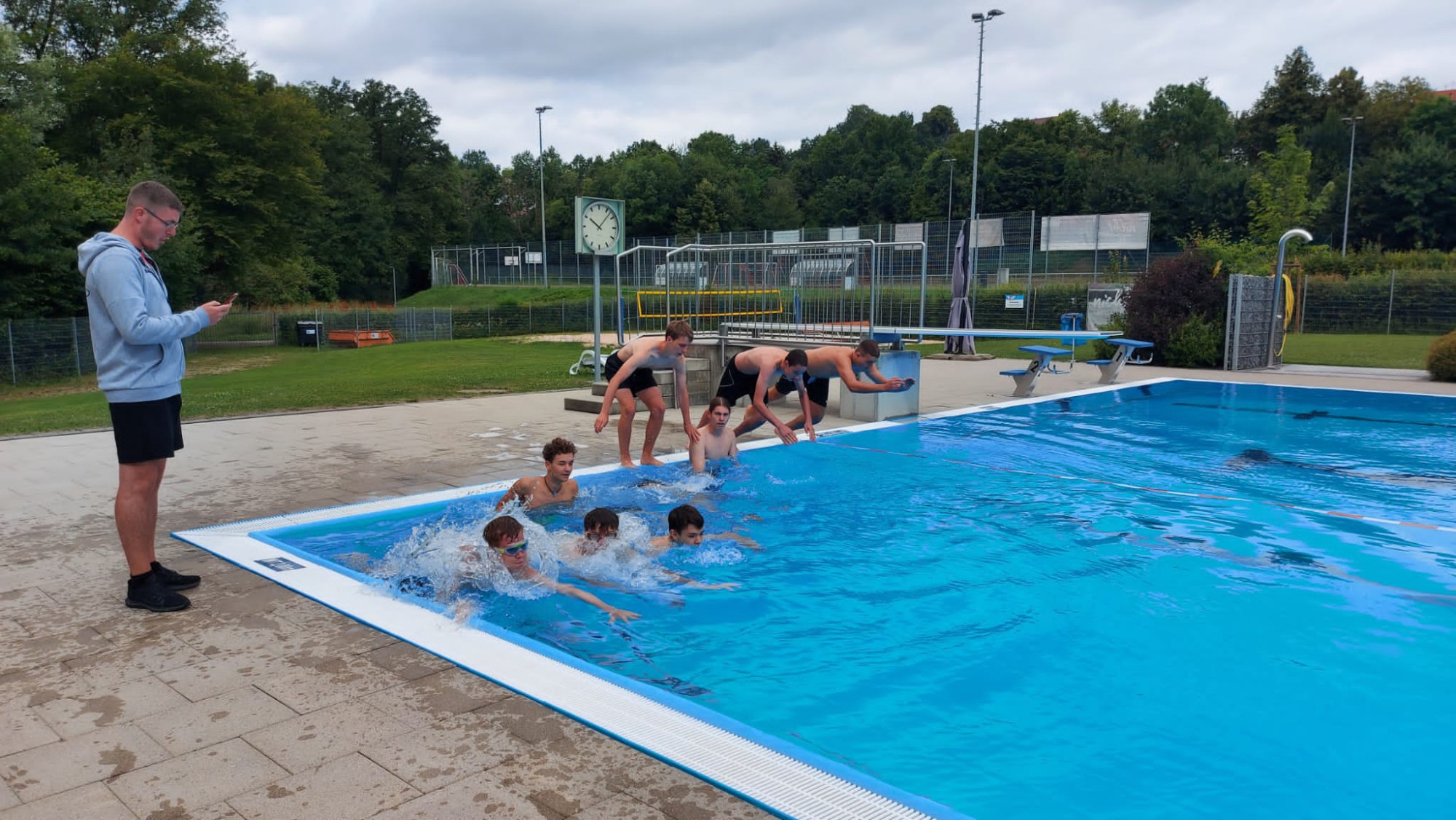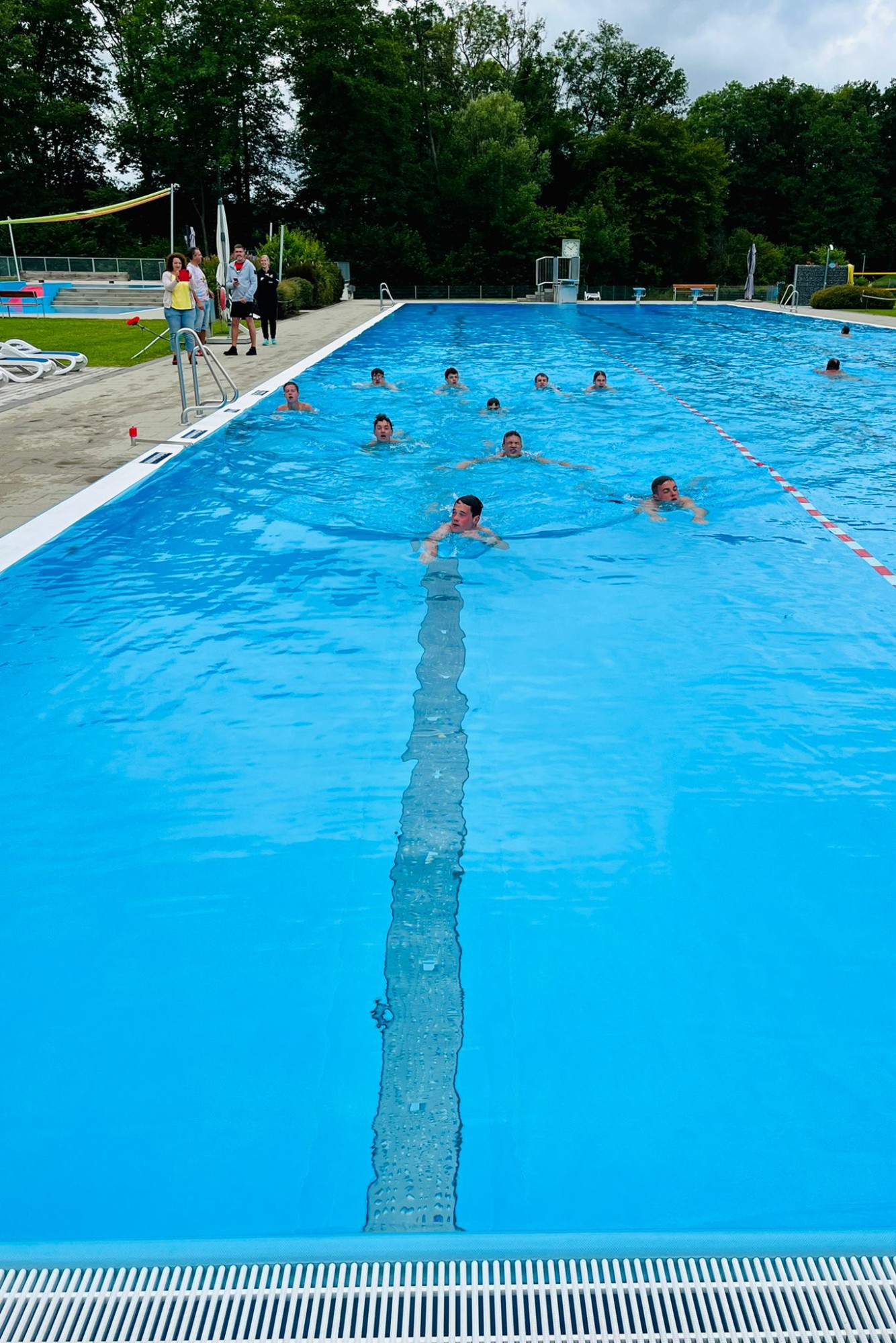 Zum Abschluss des Trainingswochenendes war für Sonntag um 10:00 Uhr ein Triathlon angesetzt. Bei niedrigen Außentemperaturen stiegen die Jungs um 10:10 Uhr in das Becken des Bettringer Freibads und zogen hier ihre Bahnen. Aufgrund der Temperaturen verzichtete man auf einen „fliegenden Wechsel“ auf die Fahrräder, sondern ließ den Beteiligten genügend Zeit, um sich abzutrocknen und mit trockenen Klamotten auf die Räder zu steigen.