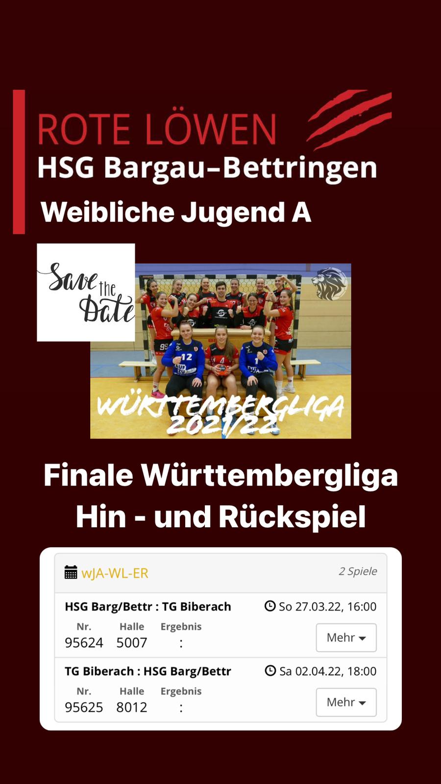 16:00 Uhr weibl. Jug. A – 1. Finalspiel württemb. Meisterschaft: