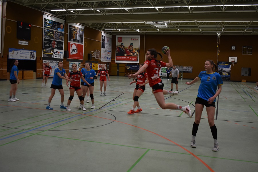Für die HSG2B spielten: Johanna Franz, Lucy Linder (im Tor), Sarah Bothner, Melina Wamsler, Melina Hagedorn, Sara Wolkenstein, Alicia Grünauer, Laura Emele, Jana Dammenmiller, Finnja Fuchs, Mailin Fuchs, Maxine Weber