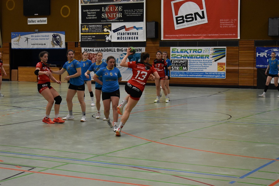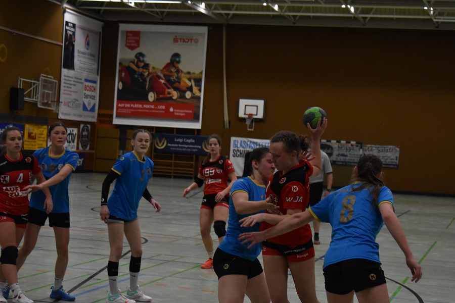 Zwar gelang es in den ersten zehn Minuten des Spiels in der Abwehr weitestgehend sicher zu stehen, doch insbesondere im Angriff ließen die Junglöwinnen die nötige Konzentration und Konsequenz vermissen. Jedoch gelang es auch dem Tabellenzweiten Mössingen nicht, sich entscheidend abzusetzen und so leuchtete auf der Anzeigetafel nach einer torarmen ersten Viertelstunde ein 6:5 für die Gastgeberinnen.
