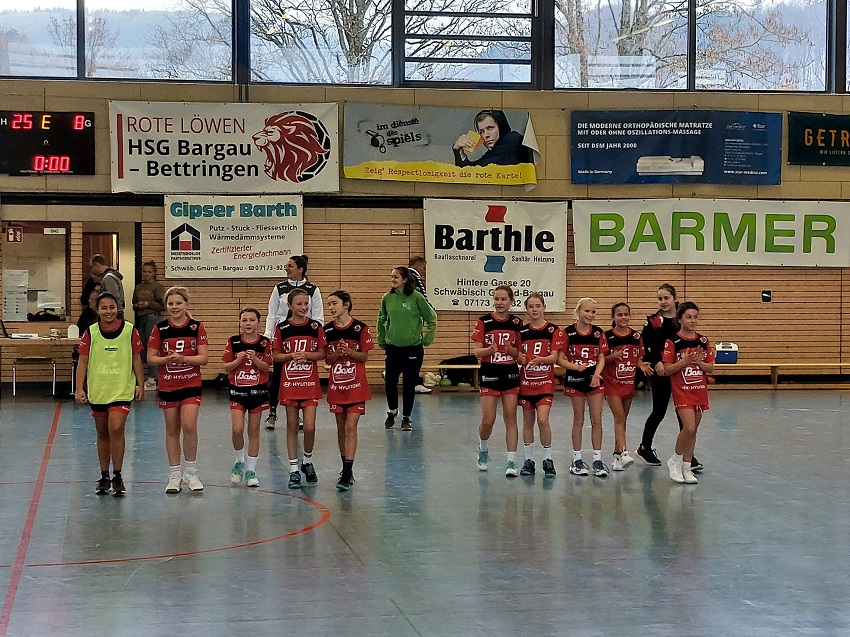 Drei Woche nach der ärgerlichen Niederlage in Donzdorf traf die wJD am Sonntag in Bargau auf Oberkochen-Königsbronn 2. Schon beim Aufwärmen zeigten sich die Junglöwinnen beeindruckt von de körperlichen Überlegenheit der Gäste und so hatte das Trainerteam im Vorfeld gut zu tun, um den Mädels ein wenig die Angst zu nehmen. Während der ersten Minuten erspielte sich die HSG2B jedoch schon zahlreiche gute Möglichkeiten, scheiterte jedoch mehrfach am Torgebälk oder mit unplatzierten Würfen. Je länger die Partie dauerte, um so sicherer wurden die Löwinnen dann aber im Abschluss und auch in der Abwehr stemmte man sich mit aller Macht gegen die großgewachsenen Angreiferinnen.
