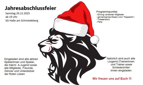 Jahresabschlussfeier in der SG-Halle Am Samstag, den 20. Dezember, findet um 19 Uhr die Jahresabschlussfeier der Handballabteilung in der SG Halle am Schmiedeberg statt. Eingeladen sind alle aktiven …