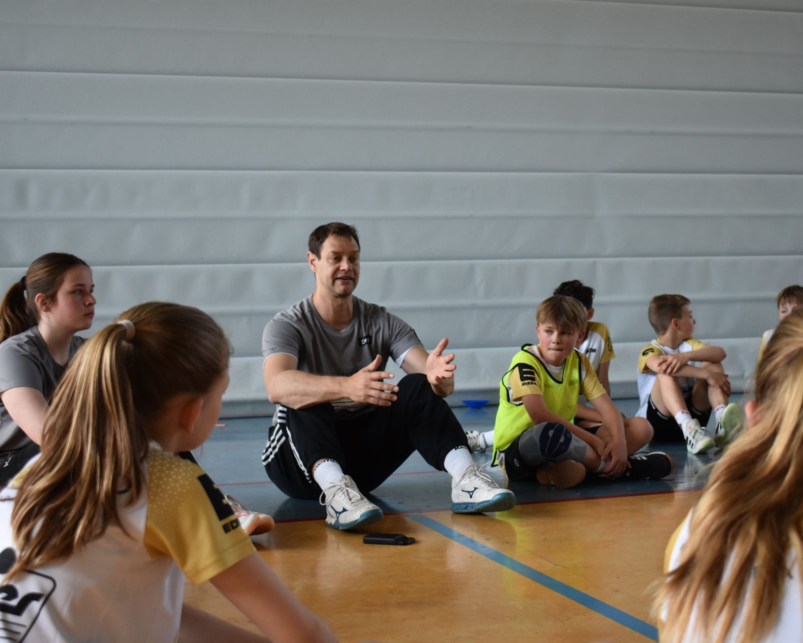 Brack trainierte verschiedene Gruppen zu seiner Paradedisziplin als aktiver Spieler – dem Schlagwurf – und legte dabei großen Wert auf die technischen Aspekte und die Spielfreude. Besonders angetan war er von der ersten Gruppe am Vormittag: „Da waren richtig gute Kinder dabei – egal ob Mädels oder Jungs. Da steckt jede Menge Talent drin!“