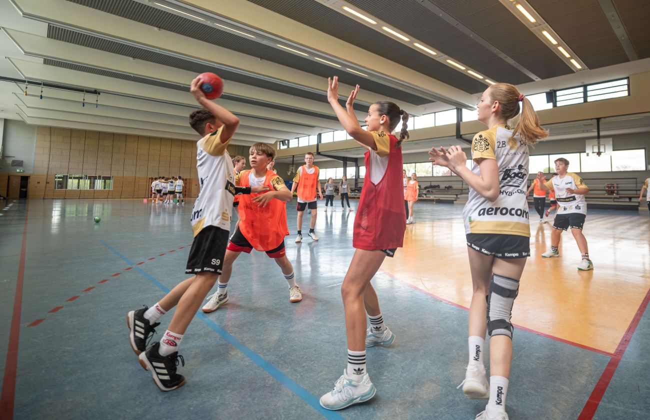 Das Camp startete am Mittwochmorgen: Nach einer kurzen Begrüßung und Vorstellung der Trainerteams ging es für die Nachwuchshandballerinnen und -handballer direkt in die verschiedenen Sportanlagen. Techniktraining, Wurfvarianten, Abwehrverhalten, Athletik- und Koordinationsübungen standen ebenso auf dem Programm wie verschiedenste kleine Spielvariationen und Teambuildingmaßnahmen.