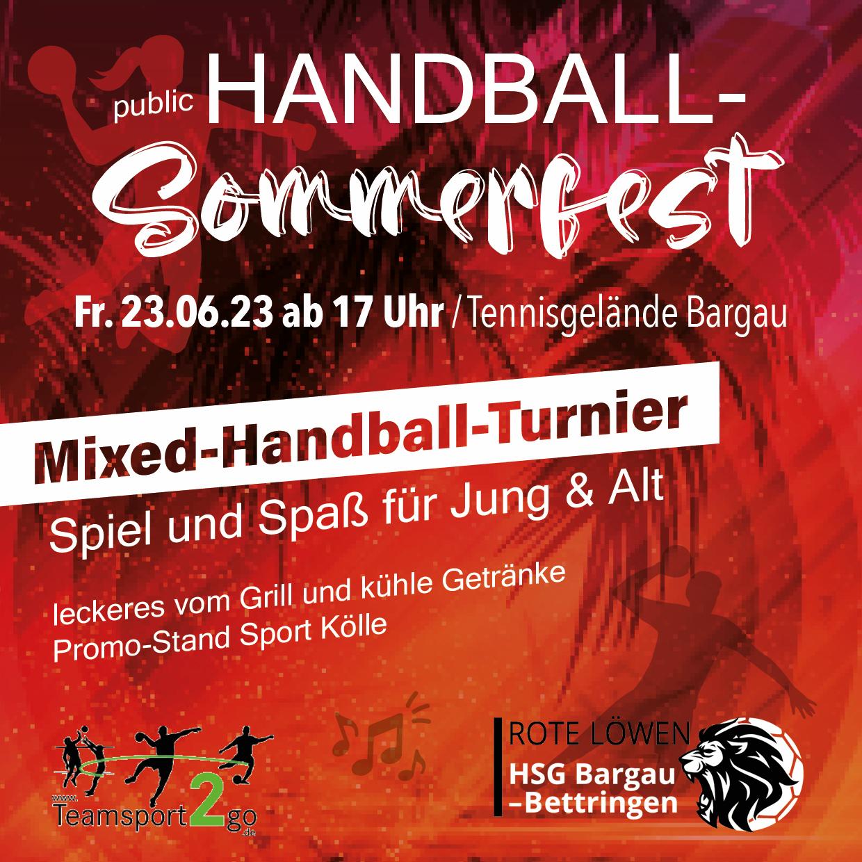 Am Freitag 23. Juni findet das 3. gemeinsame Sommerfest der HSG Bargau-Bettringen (Rote Löwen) beim Tennisplatz / Beachfeld in Bargau statt.