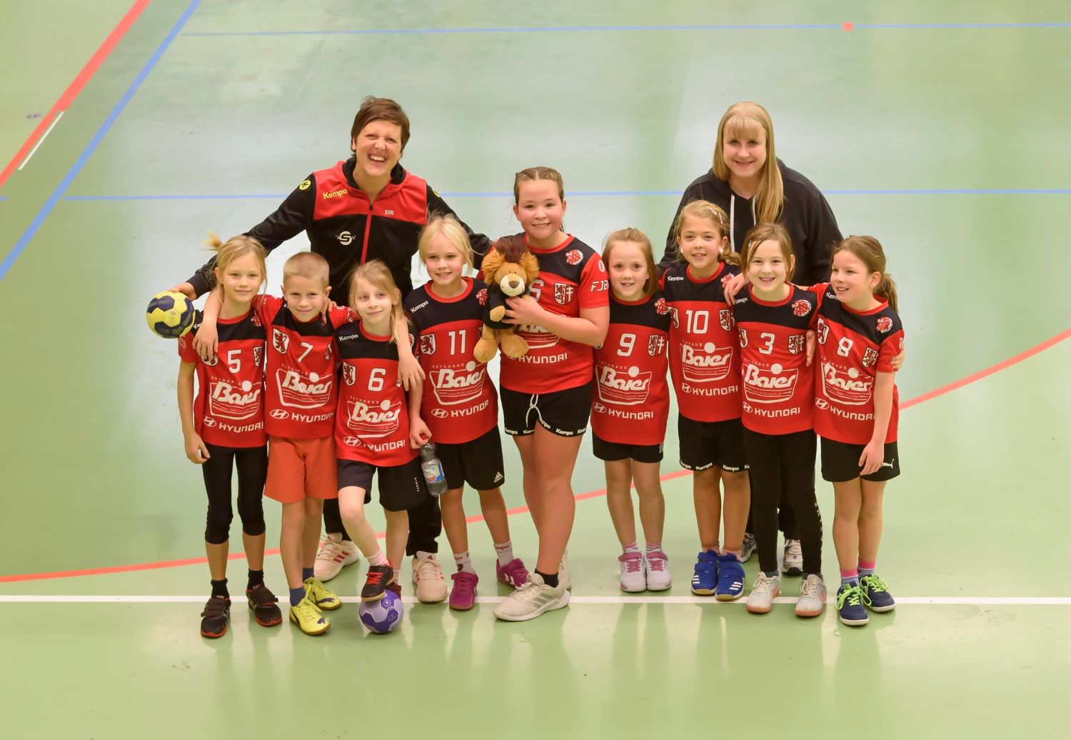 Schon völlig routiniert erfolgte das warmmachen und man konnte spüren, dass die Stimmung in der Mannschaft bestens war. Zu Beginn des Spieltages erledigte man die verschiedenen Stationen im Koordinationsparcour und konnte dann nach 30 Minuten zu den Spielen übergehen. Im ersten Durchgang spielten wir Aufsetzerball hier konnten wir an diesem Tag unsere Stärken in der Manndeckung ausspielen und uns durch leichte Ballgewinne einen Vorsprung herausarbeiten. Im Anschluss ging es nahtlos auf das Handballfeld. Mit genügend Auswechselspieler im Gepäck hatten die Löwen kein Problem jedem Spieler genügend Einsatzzeiten zu geben um sich gute Torchancen zu erarbeiten. Herausgearbeitete Ballgewinne und Dank des guten Zusammenspiels aller Spielerinnen und Spieler konnten wir auch das Handballspiel für uns entscheiden.