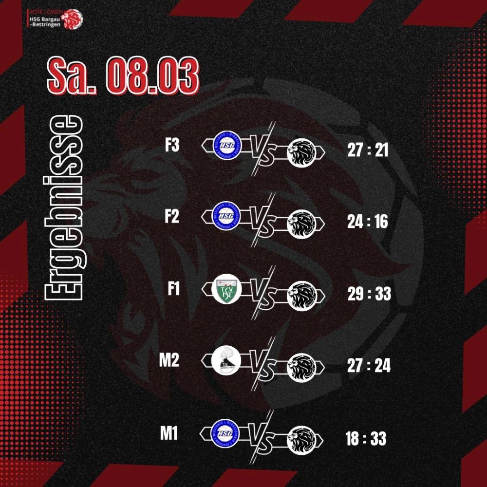 Nach dem Seitenwechsel versuchte die HSG Winzingen-Wißgoldingen-Donzdorf noch einmal, ins Spiel zurückzufinden, doch Bargau/Bettringen ließ keine Zweifel mehr am eigenen Sieg aufkommen. Mit einer weiterhin konzentrierten Abwehrleistung und schnellem Umschaltspiel baute das Team den Vorsprung weiter aus. Die Gastgeber fanden kaum noch Mittel gegen die gut organisierte Defensive der Gäste und mussten sich immer wieder schwierige Wurfpositionen erarbeiten. Die Roten Löwen hingegen zeigten sich weiterhin effektiv und erzielten in der zweiten Hälfte beeindruckende 16 Tore, während Winzingen-Wißgoldingen-Donzdorf lediglich neun Mal einnetzen konnte. Am Ende stand ein klarer 18:33-Auswärtssieg für Bargau/Bettringen zu Buche. Die Roten Löwen zeigten eine geschlossene Mannschaftsleistung und ließen keinen Zweifel am verdienten Sieg.