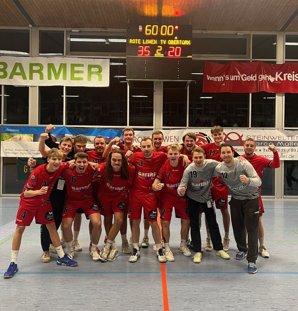 Direkt zu Beginn der zweiten Halbzeit brachten die Gäste aus Obertürkheim ein wenig Unruhe in das Spiel der Roten Löwen. Im Angriff agierten sie mit zwei Kreisläufern im 7-gegen-6, und in der Abwehr wurden Marius Kreilinger und Frank Meis aus dem Spiel genommen. Die Folge war ein 0:4-Lauf binnen kürzester Zeit. Ein kleiner, aber lauter Wachrüttler vom Trainer war notwendig und die Jungs fanden wieder in die Spur. Drei Tore in Folge ohne Gegentor brachten wieder eine Neun-Tore-Führung und spätestens nach 43 Minuten beim Stand von 25:13 waren sich alle sicher: Dieses Spiel gibt man nicht mehr aus der Hand!