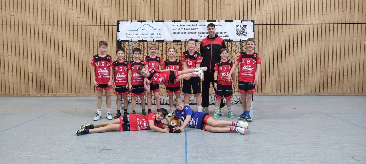 Gegner waren die Mannschaften der HT Staufen und der JSG Göppingen. Unsere Jungs traten nach den koordinativen Wettkampfübungen im 6+1-Handball auf dem ganzen Feld gegen beide Mannschaften an, nachdem zuvor HT Staufen gegen JSG Göppingen gespielt hatte.