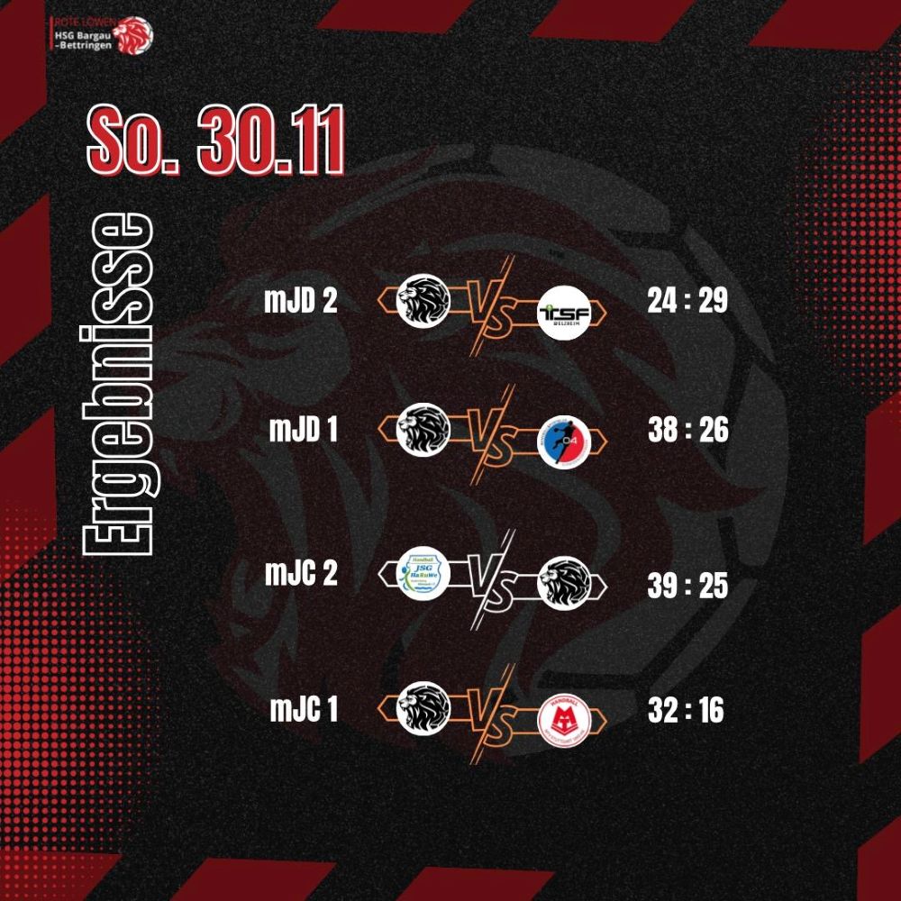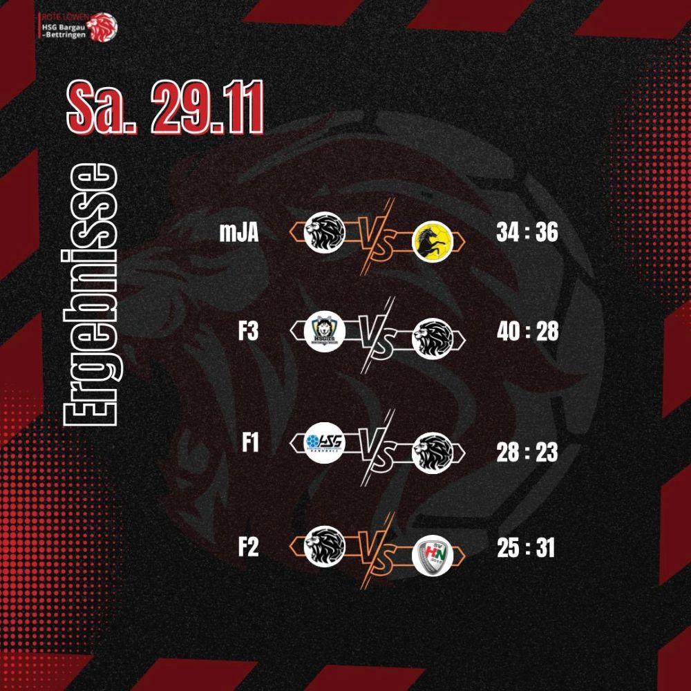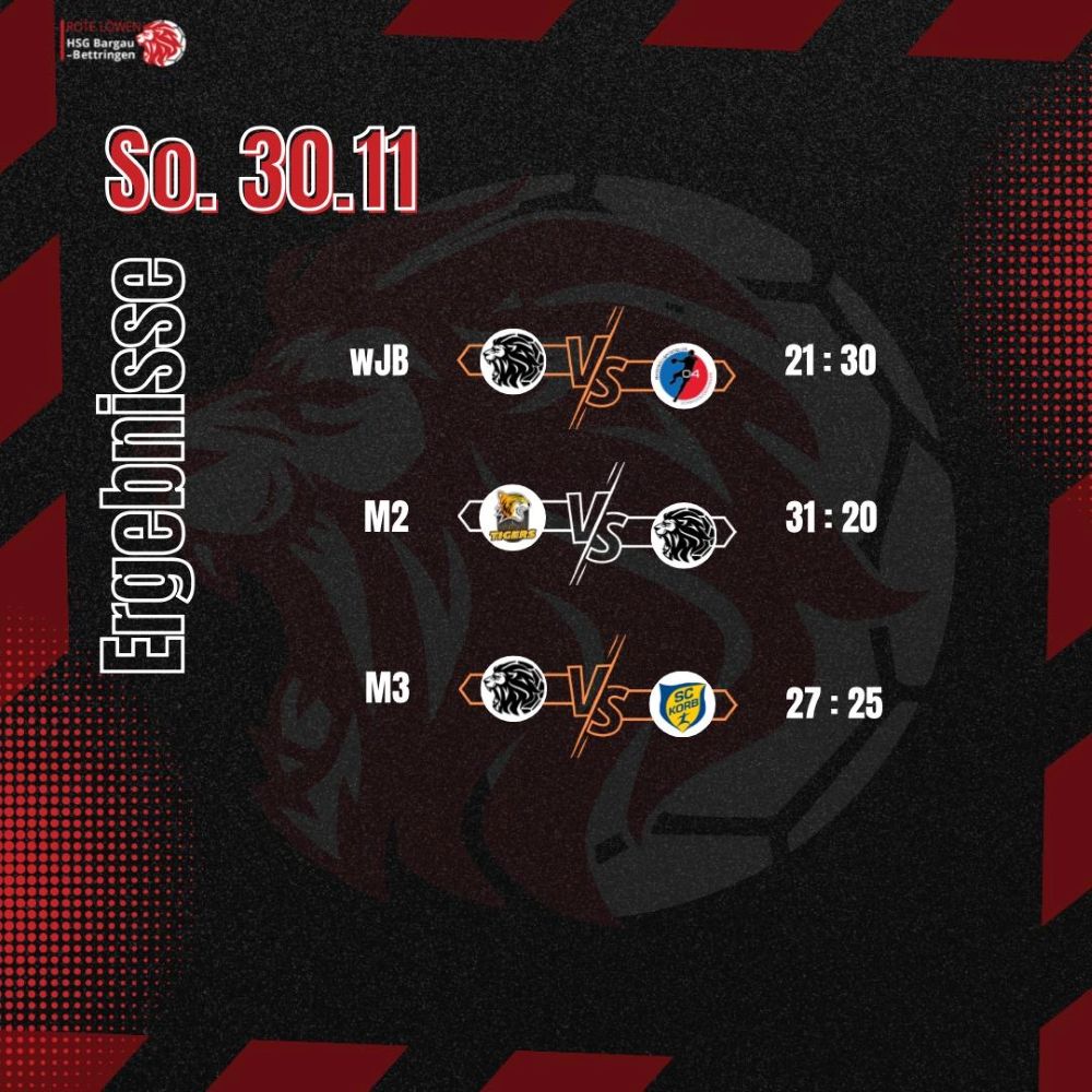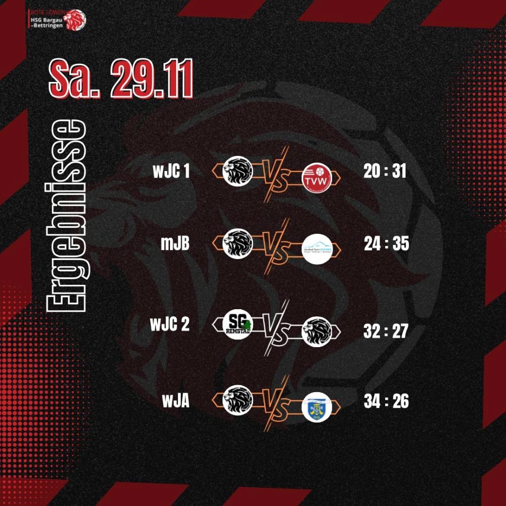 Am Samstag, den 29. November, traf die weibliche C1 der HSG Bargau-Bettringen in der Uhlandhalle auf die weibliche Jugend C des TV Weingarten. Das Ziel der HSG war es, von Beginn an konzentriert aufzutreten und ein möglichst ausgeglichenes Spiel zu zeigen. Der Start gelang den Roten Löwinnen zunächst gut, doch nach einigen Minuten schlichen sich immer mehr technische Fehler und ungenutzte Chancen ein. Dadurch wurde der TV Weingarten zunehmend stärker und konnte sich bis zur Pause deutlich absetzen. Zur Halbzeit lag die HSG mit 8:17 zurück. In der zweiten Hälfte steigerte sich unser Team spürbar. Die Abwehr stand stabiler, und die Heimmannschaft fand besser ins Spiel. Im Angriff fehlte jedoch weiterhin die nötige Effektivität, sodass trotz guter Ansätze nur wenige klare Chancen verwertet wurden. Am Ende unterlag die HSG Bargau-Bettringen mit 20:31. Trotz eines deutlich verbesserten zweiten Durchgangs reichte die Chancenverwertung nicht aus, um das Ergebnis enger zu gestalten.