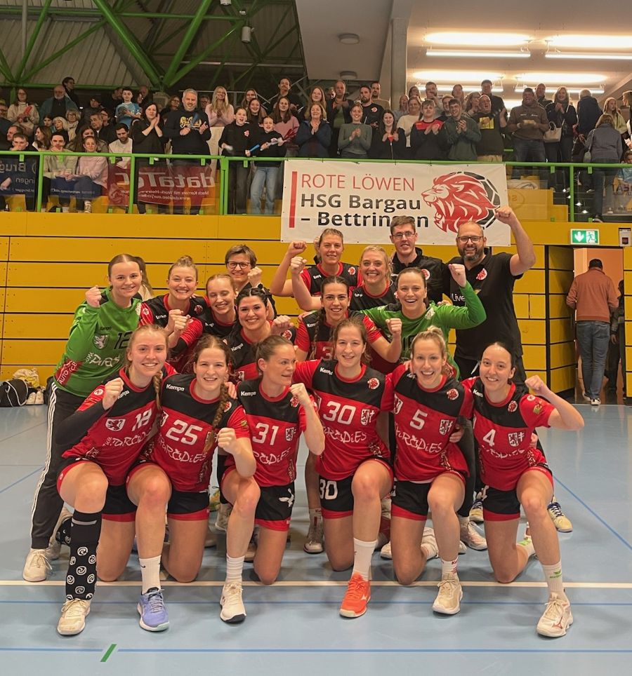 Spätestens seit Samstag, 21.30 Uhr, ist der dritte Aufstieg innerhalb von vier Jahren für die Damen der HSG Bargau/Bettringen zum Greifen nah – Durch den 19:26-Erfolg im Spitzenspiel gegen Pfullingen stehen die Roten Löwinnen nun auf dem 1. Tabellenplatz und haben durch einen Sieg in den letzten beiden Spielen der Saison den direkten Aufstieg in die Oberliga in der eigenen Hand.