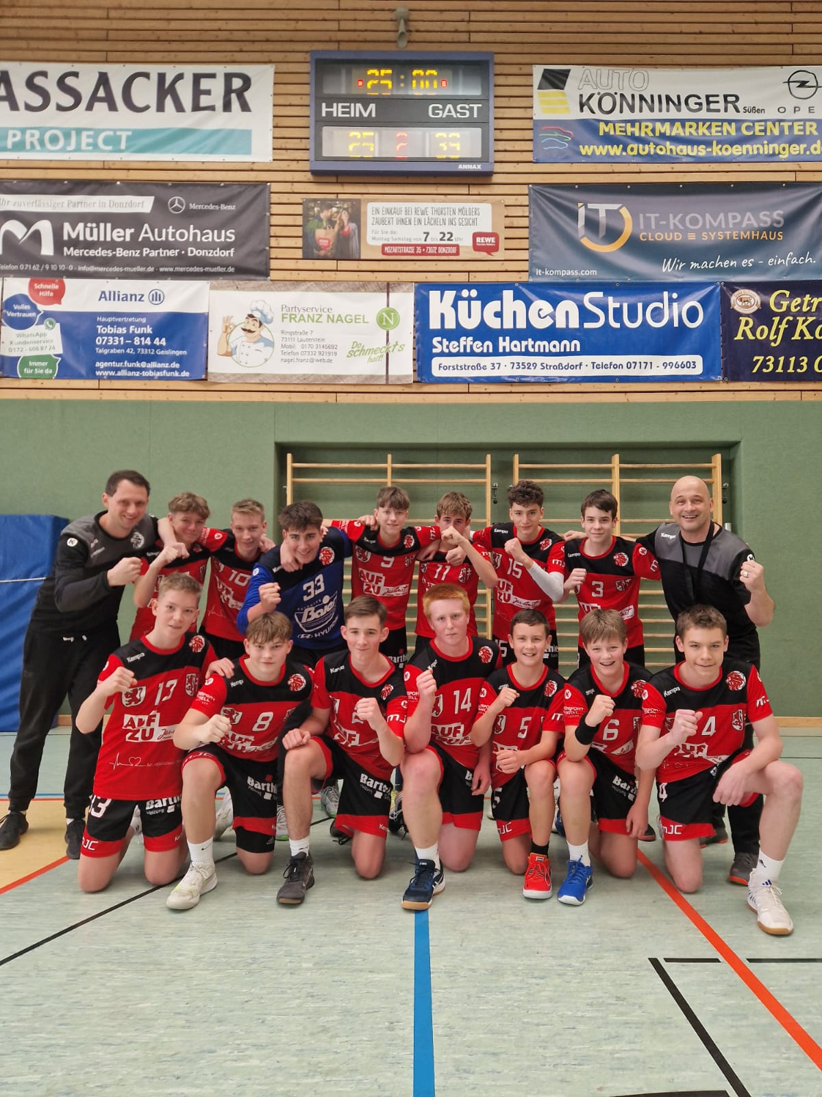 Es spielten: Fabian Barth, Ben Fürst (beide Tor), David Ritz (2), Jonas Weiß (1), Tim Groß (8), Luca Leide, Leo Mayer (3), Paul App (9), Lennard Kolb (5/1), Jannis Barth, Niklas Georgy, Thilo Hegele, Philipp Seibold, Sebastian Koscheluh (4)