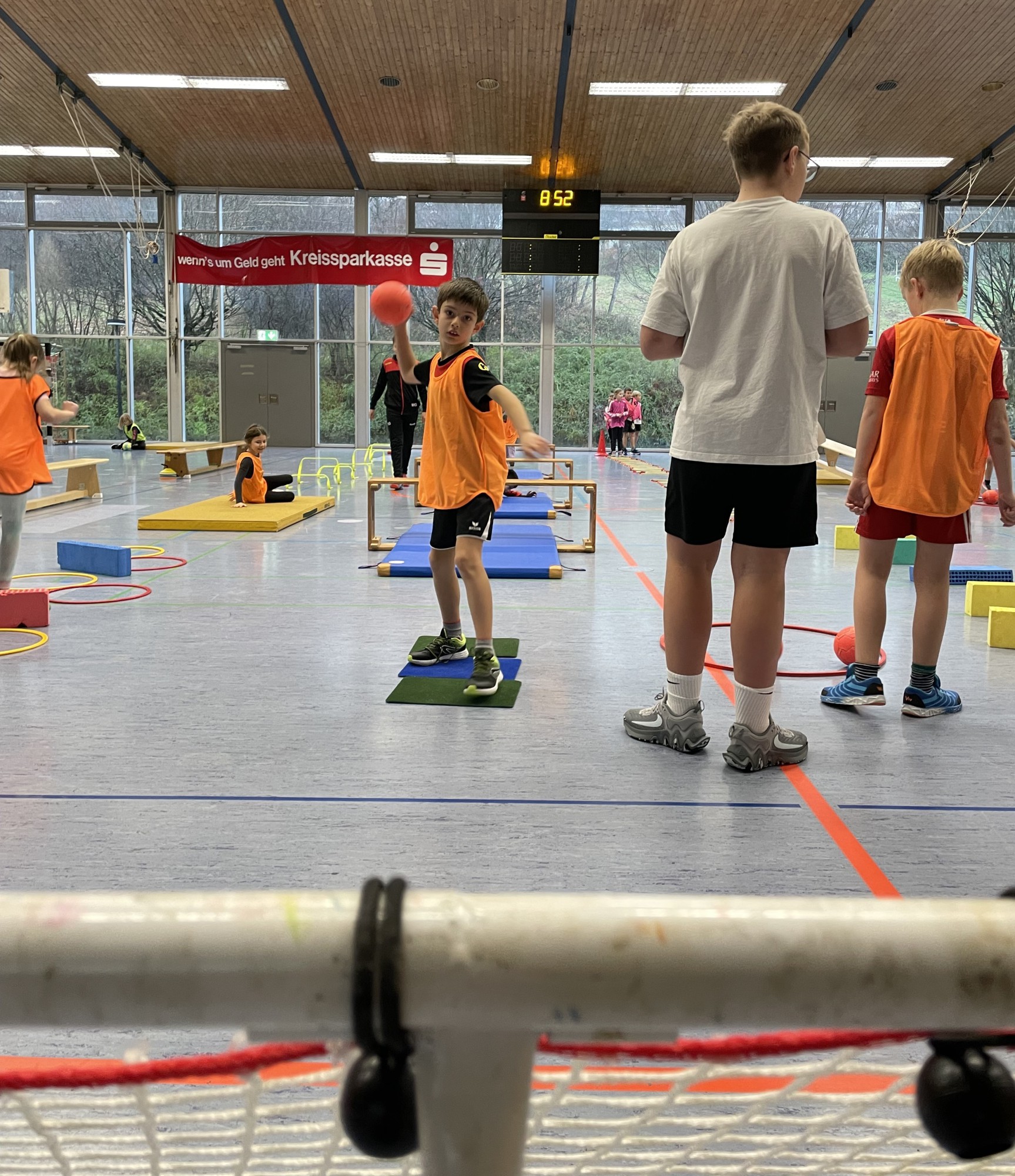 Nach einer kurzen Einführung und dem gemeinsamen Warmmachprogramm galt es, Koordinationsstationen zu absolvieren und sich im Werfen, Prellen und Fangen zu probieren. Außerdem konnten die Kinder bei der Spielform „Turmball“, „Transportball“ und „Handball 4+1“ ihre Geschicklichkeit demonstrieren. Natürlich stand bei allen Spielen der Spaß im Vordergrund und alle Kinder waren mit Feuereifer dabei. Somit konnten am Ende des Vormittags alle als Sieger geehrt werden. Stolz durften die Schülerinnen und Schüler eine Urkunde sowie ein Regelheft entgegennehmen.
