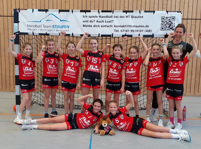 Mit einem deutlichen Sieg über das Team aus Kuchen/Gingen/Süßen und einem hart umkämpften Remis gegen den Gastgeber HT Staufen, das nach der Multiplikatorregel aufgrund einer Torschützin weniger als verloren gilt, zeigten die Mädels durch die Bank eine Weiterentwicklung im Zusammenspiel. Ausgehend von einer konsequenten Verteidigung konnten viele Bälle erobert und durch schnelles Umschaltspiel in Tore verwandelt werden. Beim letzten Spiel ließ man sich nach einem Start nach Maß etwas den Schneid abkaufen und letzten Endes fehlten dann die nötigen Körner, um den enormen Kampfwillen mit einem Sieg zu belohnen.