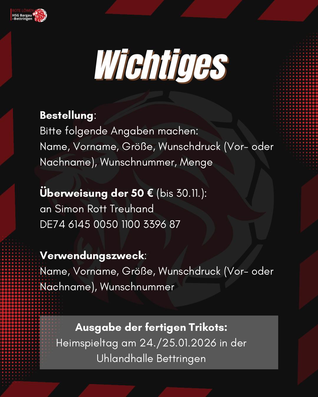 📍Ausgabe der fertigen Trikots: Heimspieltag am 24./25.01.2026 in der Uhlandhalle Bettringen.