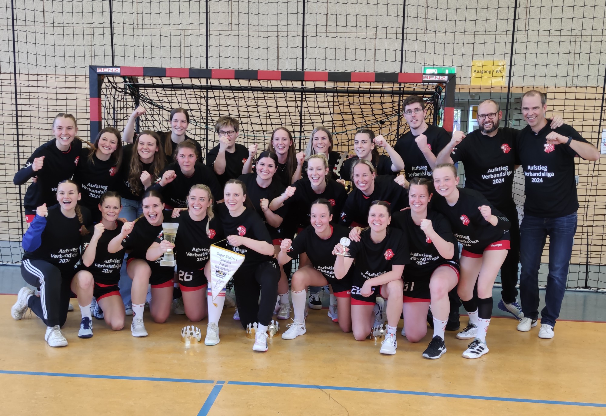 Es ist vollbracht: am Samstag feierten die Frauen 1 in der Landesliga nach ihrem hart erkämpften 20:18 Heimsieg in der rappelvollen Fein Halle die Meisterschaft und den damit verbundenen Aufstieg in die Verbandsliga.