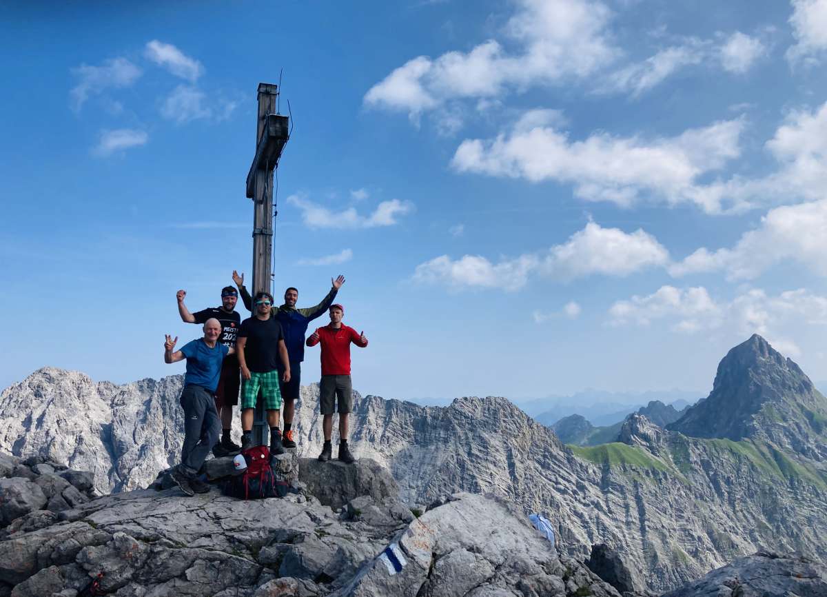 Am Sonntag stand nach einem Frühstück auf der Terrasse die Rückreise an. Gemeinsam machten wir uns auf den Weg zum Saulajochsteig. Ein Teil machte sich über den Lünersee und die Douglasshütte auf den Weg Richtung Brand. Der andere Teil kämpfte sich mit leichtem Gepäck noch auf den Saulakopf (2517m). Nach dem abenteuerlichen Aufstieg war der Abstieg über den „Latschenfresserweg“ ins Tal auch noch spannend. Vereint im Tal hatte die Gruppe bei uriger Hüttenmusik noch einen gemeinsamen Abschluss.