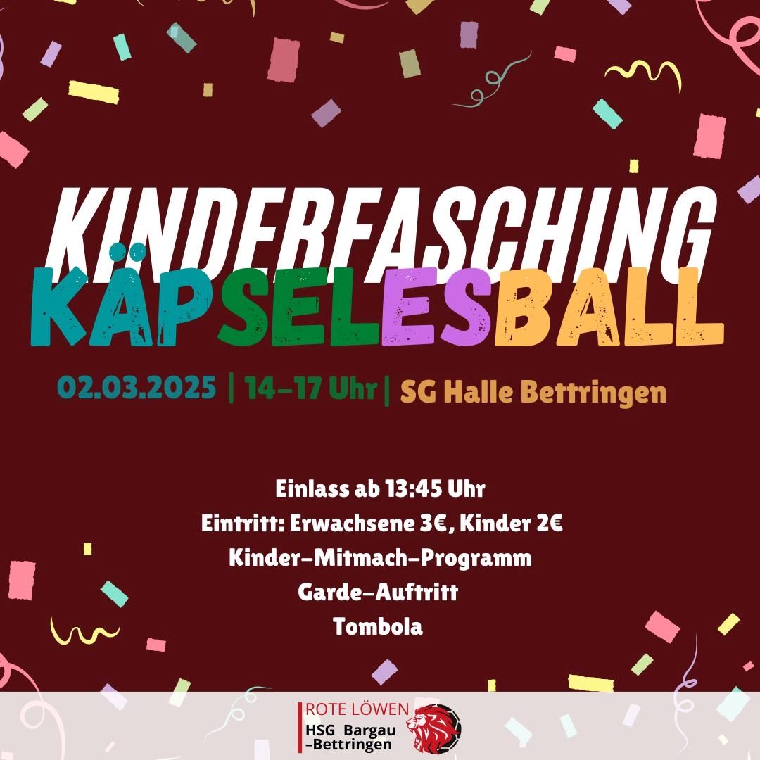 Am Sonntag, den 02.03.2025 dürfen wir wieder mit euch von 14:00 - 17:00 Uhr den Kinderfasching in der SG-Halle in Bettringen feiern.