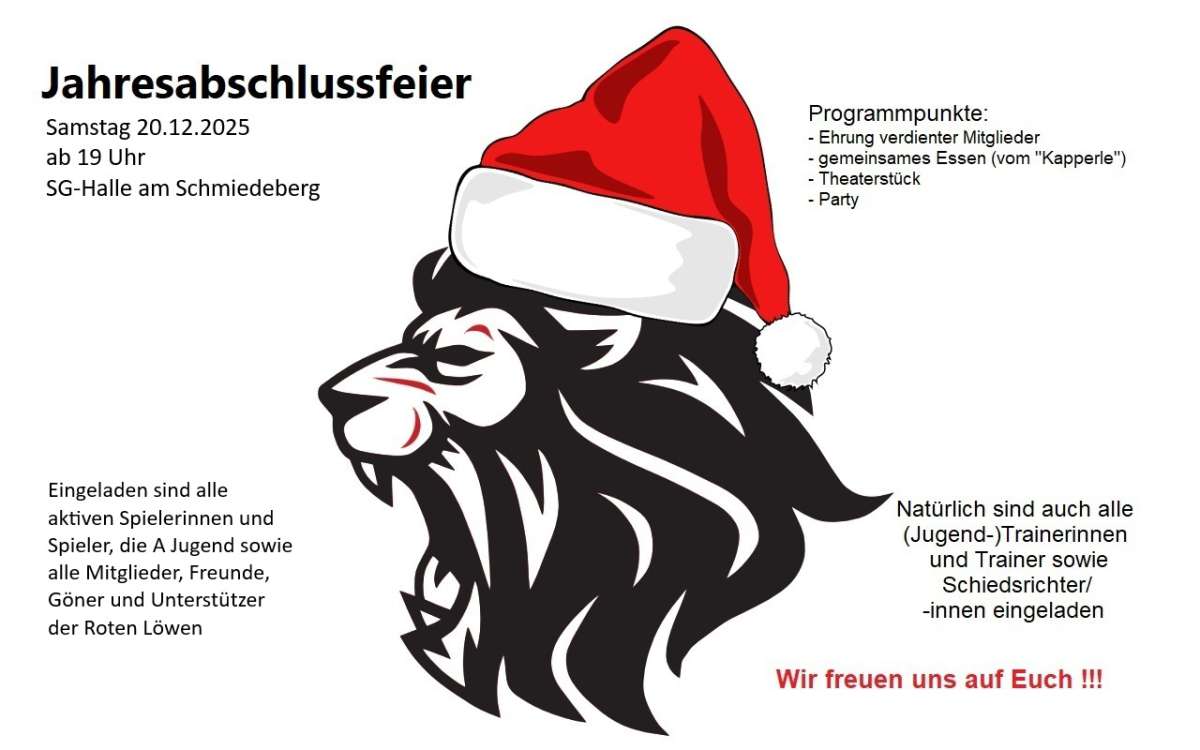Eingeladen sind alle aktiven Spielerinnen und Spieler, (Jugend-)Trainer/-innen und Betreuer, unsere Schiedsrichter/-innen, die weibliche und männliche A-Jugend sowie alle Mitglieder, Freunde, Gönner und Unterstützer der Roten Löwen.