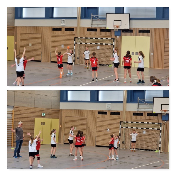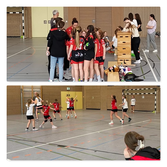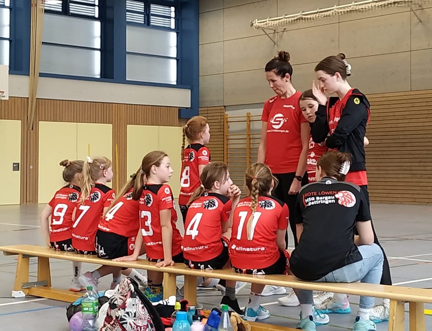 Die HSG startete mit Handball. Obwohl die körperliche Überlegenheit des Gegners nicht zu übersehen war, starteten die Mädels sehr couragiert in die Partie. In der Abwehr gingen die Mädels konsequent zu Werke und zeigten sich bzgl. der Größe des Gegners unbeeindruckt. So entwickelte sich ein Spiel auf Augenhöhe. Aufgrund mehrerer ausgelassener Torchancen ging es mit einem Tor Rückstand in die Halbzeit. In der zweiten Hälfte knüpften die Mädels an die tolle Leistung der ersten zwölf Minuten an, konnten in Führung gehen und diese bis zum Schlusspfiff auf 13:16 ausbauen. Da sich fast alle Spielerinnen in die Torschützenliste eintragen konnten, ging auch die Multiplikationswertung eindeutig an die Roten Löwen.
