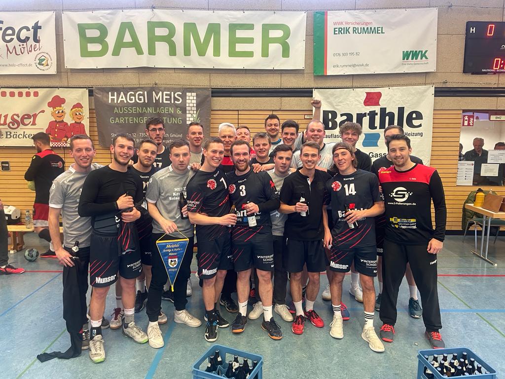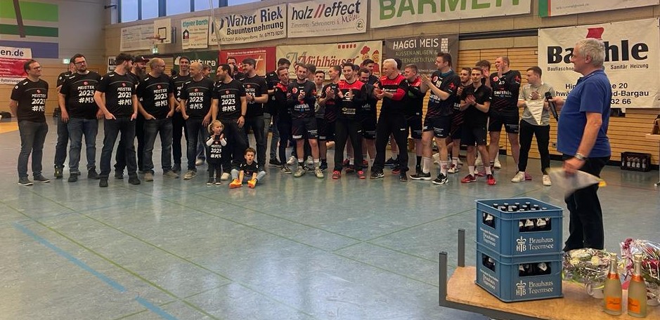 Die zweite Halbzeit verlief weiterhin nach Vorgaben des Trainers. Eine aggressive Abwehr stellte das gegnerische Team vor große Probleme und durch das hohe Tempospiel konnte man die Führung weiterhin ausbauen. So wurde der Vorsprung bis zur 46 Minute auf 28:18 ausgebaut und das Spiel war gelaufen. Man testete noch unterschiedliche Konstellation aus und so plätscherte das Spiel im weiteren Verlauf vor sich hin. Die Jungs gewannen auch ihr letztes Heimspiel in dieser Saison mehr als verdient mit 36:24. Im Anschluss wurde der zweiten und dritten Mannschaft der Roten Löwen der Meisterwimpel überreicht und dies wurde anschließend ausgiebig zelebriert.