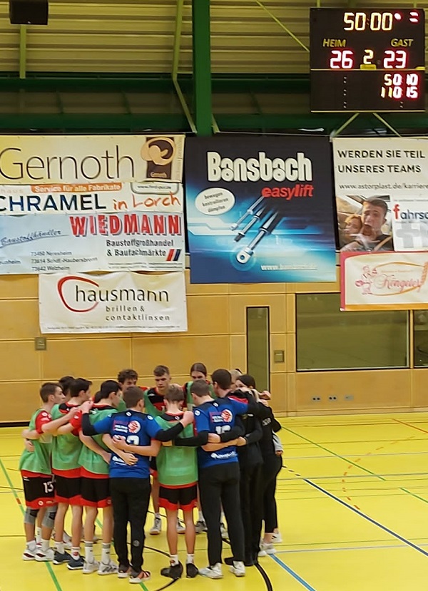 Für ihr letztes Spiel in der Württembergliga am Sonntag in Lorch hatten sich die Jungs der männl. Jug. B eigentlich fest vorgenommen, die Hinspielniederlage wettzumachen und den dritten Tabellenplatz zu verteidigen. Aber wie schon in Bargau zeigte man in der Anfangsphase vor einer riesigen und lautstarken Kulisse Nerven und kam nicht richtig in die Gänge.