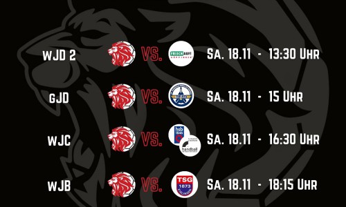 VORSCHAU Samstag 18.11.2023 Fein Halle Bargau13:30 Uhr weibl. Jug. D: HSG2B 2 – FA Göppingen 2 15:00 Uhr männl. Jug. D: HSG2B – TSB Gmünd 16:30 Uhr weibl. Jug. C: HSG2B – HDH-Steinheim 18:15 Uhr …
