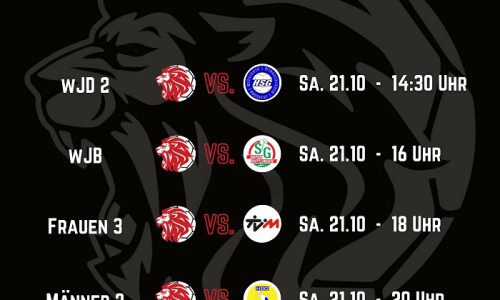 VORSCHAUSamstag 21.10.2023 Fein Halle 14:30 Uhr weibl. Jug. D: HSG2B 2 – WiWiDo 2 16:00 Uhr weibl. Jug. B: GSG2B – Hofen-Hüttlingen 18:00 Uhr Frauen KL A: HSG2B 3 – Mögglingen 20:00 Uhr Männer BKL: …