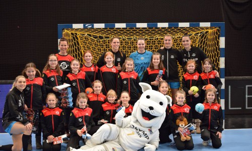 Begrüßung der Junglöwinnen vor Spielbeginn und Besichtigung der MHP-Arena Weibl. Jug. E bei Champions-League in Bietigheim – Nationalspielerinnen hautnah und zum „Anfassen“ Am Sonntag vor einer Woche …