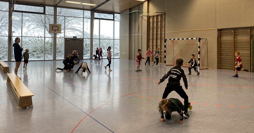 Die Olympiade begann mit einem gemeinsamen Aufwärmen und einem Fangspiel. Anschließend hatten die Kinder eine Stunde lang die Gelegenheit, verschiedene Stationen zu durchlaufen, um ihre Wurftechnik, Koordination und andere Fähigkeiten im Kontext des Handballspiels zu verbessern.