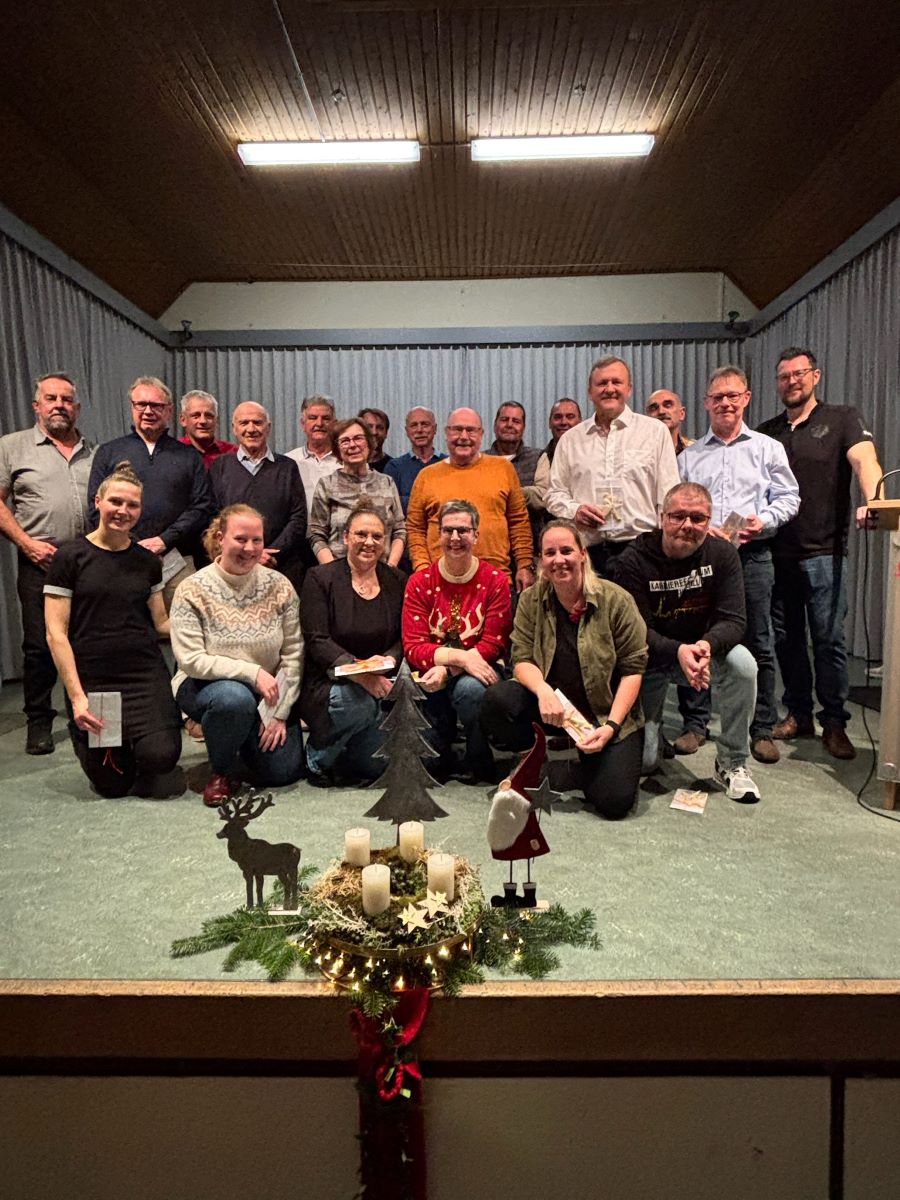 Nach der Eingangsrede von Vorstandsmitglied Christoph Schneider, der das vergangene Handballjahr nochmals Revue passieren ließ, Ausblicke für 2025 und 2026 gab und sich bei allen ehrenamtlich Tätigen für die geleistete Arbeit bedankte, wurde das gemeinsame Essen serviert, ehe im Anschluss langjährige und verdiente Mitglieder geehrt wurden: