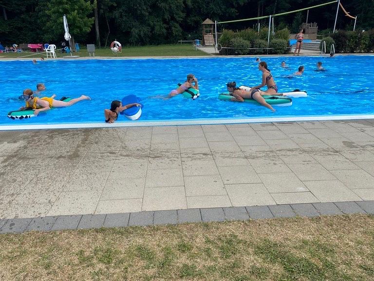Die weibliche E-Jugend traf sich zum letzten Training vor den Sommerferien dieses Mal nicht in der Uhlandhalle, sondern im Bettringer Freibad.