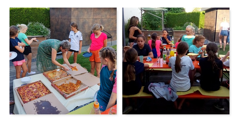 Die weibliche D-Jugend wiederum trainierte nochmals ganz normal in der FEIN-Halle, ehe man sich anschließend noch in Baurs Garten zum Pizzaessen traf.