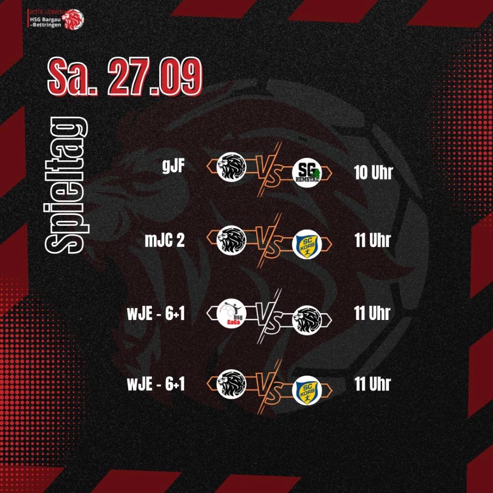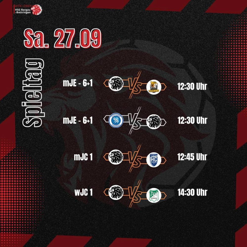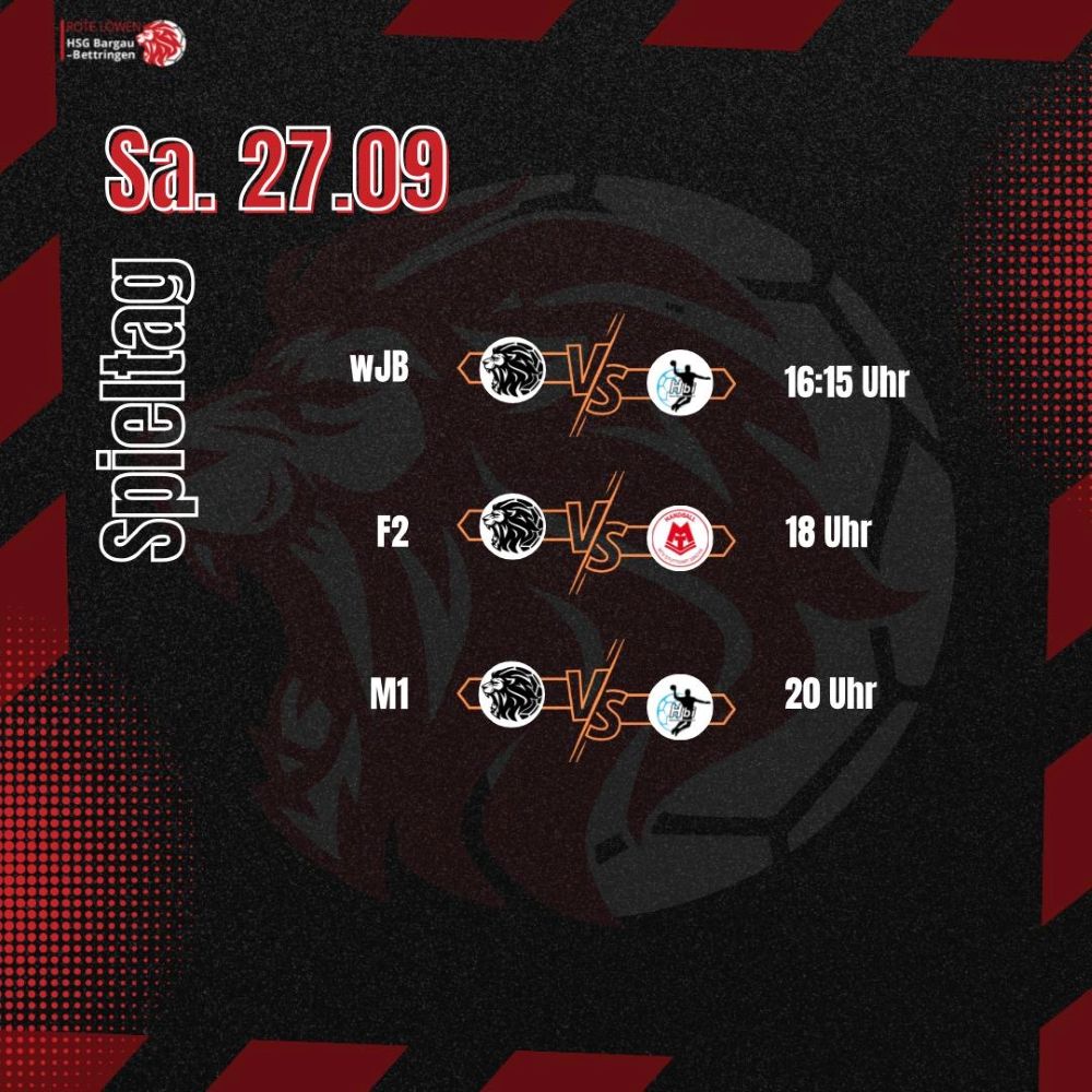 Endlich Heimspiel-Wochenende! Am 27./28.09. eröffnen wir die Saison 25/26 in der Fein-Halle Bargau. Kommt vorbei, feuert unsere Roten Löwen an