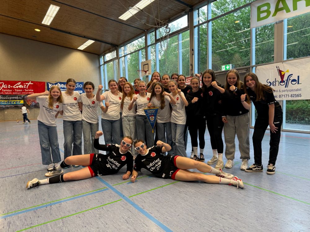 Am Samstag, den 26.04. stand für die Gruppe 2 der weiblichen D-Jugend endlich die lang ersehnte Übergabe des Meisterwimpels an. Die Mädels erhielten diesen während der Halbzeitpause des Aufstiegsspiels der ersten Frauenmannschaft. Entsprechend überwältigend war die Kulisse in der Uhlandhalle: Ein toller Abschluss einer erfolgreichen Saison!