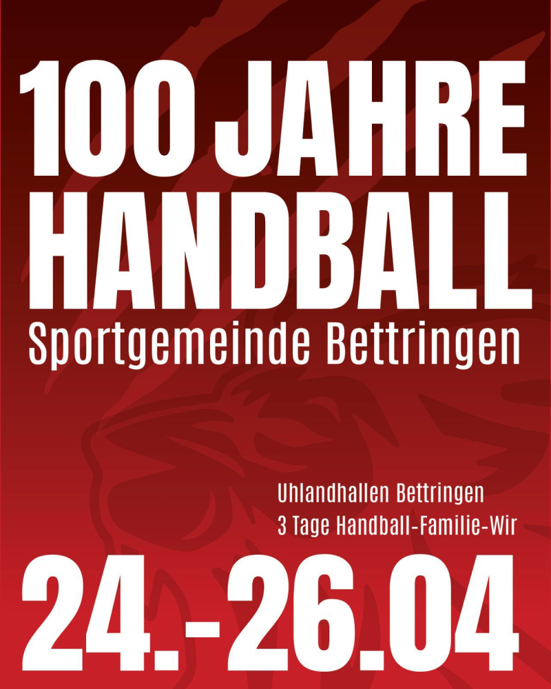 Im Jahr 2026 feiert die Handballabteilung der SG Bettringen ihr 100-jähriges Bestehen – ein ganz besonderes Jubiläum, das wir gemeinsam mit euch feiern möchten. Freut euch auf drei Tage voller Handball, Begegnungen, Emotionen und unvergesslicher Momente unter dem Motto: